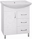 - напольная тумба под раковину: распашная дверца, 3 выдвижных ящика, хромированные ручки, ножки. Декоративная фрезеровка фасадов.