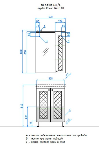 Размеры ШxГхВ: 570х435х840 мм.