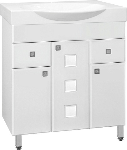 - напольная тумба под раковину: 3 распашные дверцы, 2 ящика, ручки, ножки
