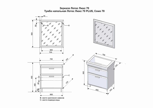 Style Line Тумба для умывальника Лотос 70 Люкс белая PLUS