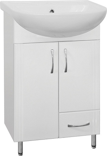 - напольная тумба под раковину: 2 распашные дверцы, выдвижной ящик, металлические ручки, ножки.