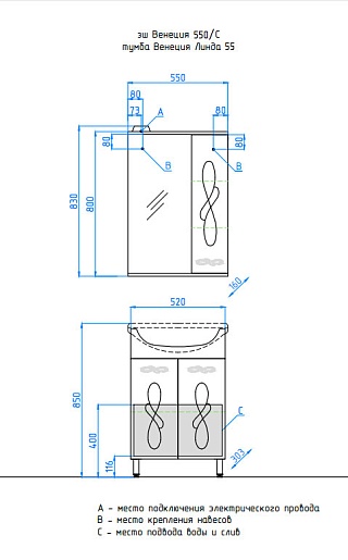 Style Line Тумба для умывальника Венеция - 55