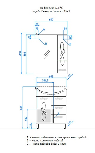 - напольная тумба под раковину: распашная дверца, ящики, хромированные ручки, ножки, петли с доводчиками, ящики на направляющих.