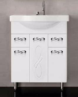 - напольная тумба под раковину: распашные дверцы на доводчиках, ящики на направляющих, хромированные ручки, ножки