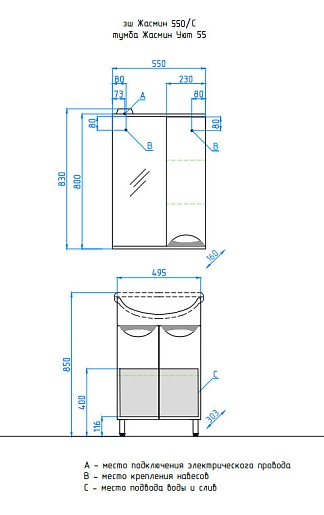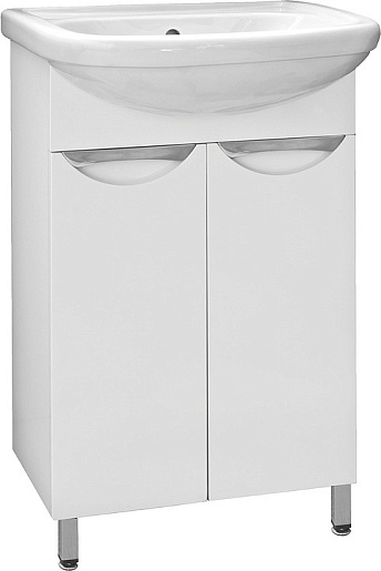 - напольная тумба под раковину: 2 распашные дверцы, стильные врезные ручки, ножки