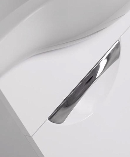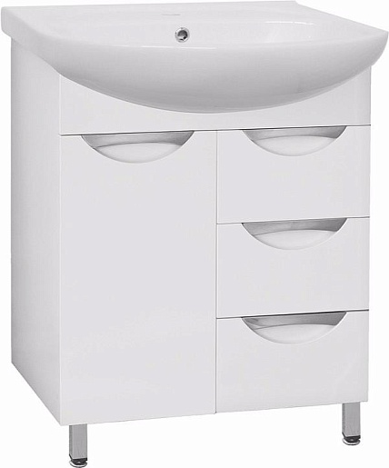 - напольная тумба под раковину: 1 распашная дверца, 3 выдвижных ящика, стильные врезные ручки, ножки