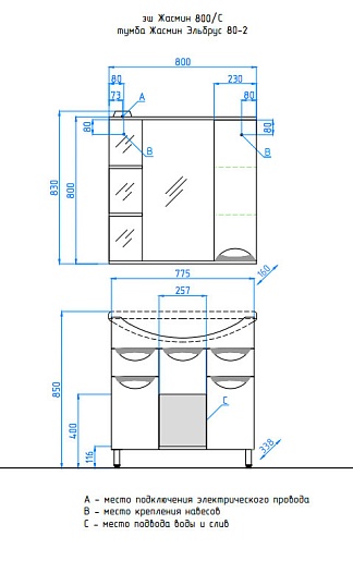 Style Line Тумба для умывальника Жасмин 80