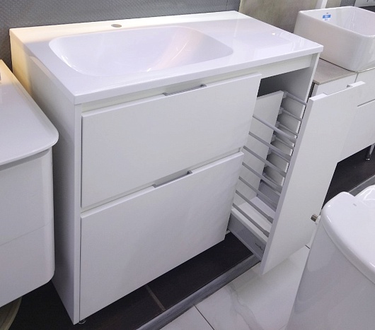 Style Line Тумба под раковину Барселона 90 L белая с б/к Люкс Plus