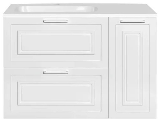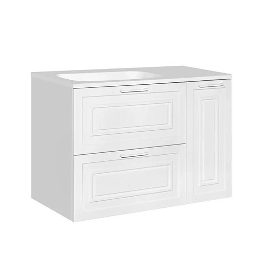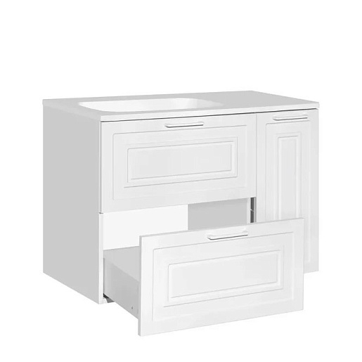 - подвесная тумба под раковину Альба 90 L, арт. ЛС-000010054: распашная дверца с корзиной для белья, 2 ящика
