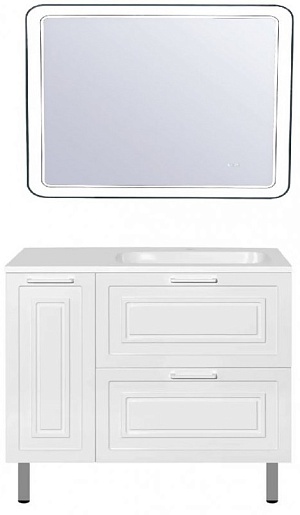 - напольная тумба под раковину Альба 90, арт. ЛС-000010054нап : распашная дверца с корзиной для белья, 2 ящика, ножки