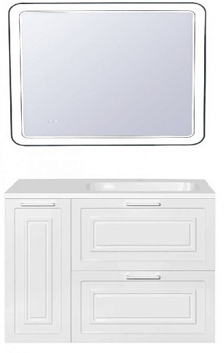 - подвесная тумба под раковину Альба 90, арт. ЛС-000010054: распашная дверца с корзиной для белья, 2 ящика