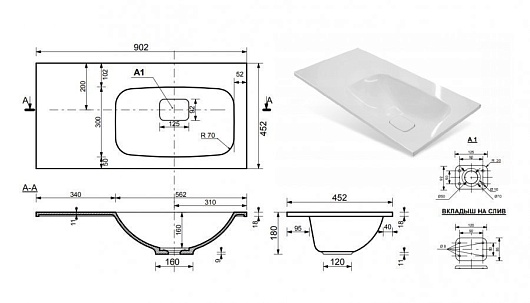 - мебельная раковина Барселона 90 R, литьевой мрамор