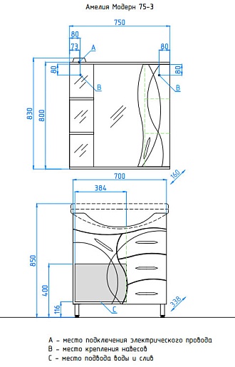 Тумба для умывальника Амелия 75