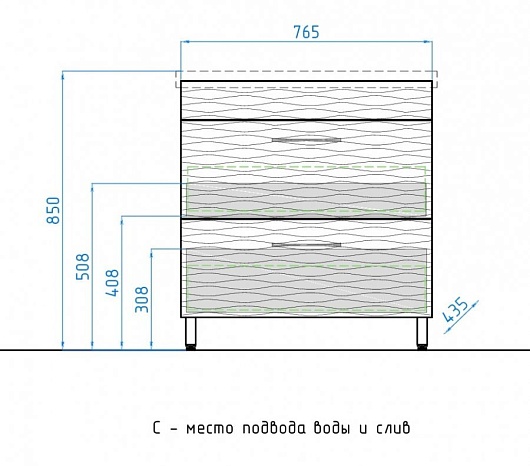 - напольная тумба под раковину: 2 выдвижных ящика, на направляющих.