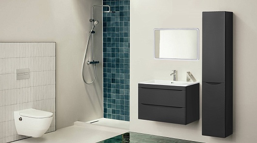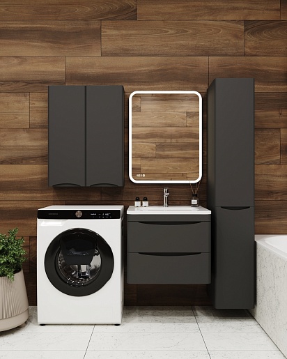 Тумба с раковиной Style Line Бергамо Мини 60 подвесная черная Люкс антискрейтч Plus - арт. СС-00002318 / СС-00002295.