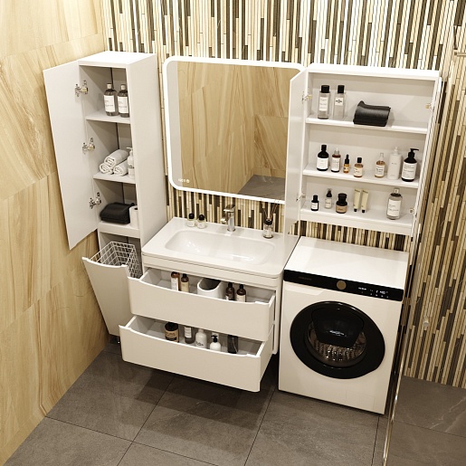 Тумба под раковину Бергамо Мини 80 подвесная белая Люкс антискрейтч Plus