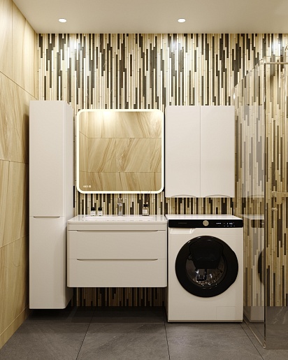 Тумба с раковиной Style Line Бергамо Мини 80 подвесная белая Люкс антискрейтч Plus - арт. СС-00002322 / СС-00002297.