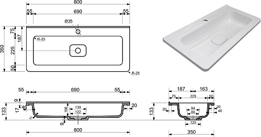 Мебельная раковина Эстет Каре Мини 80 Люкс