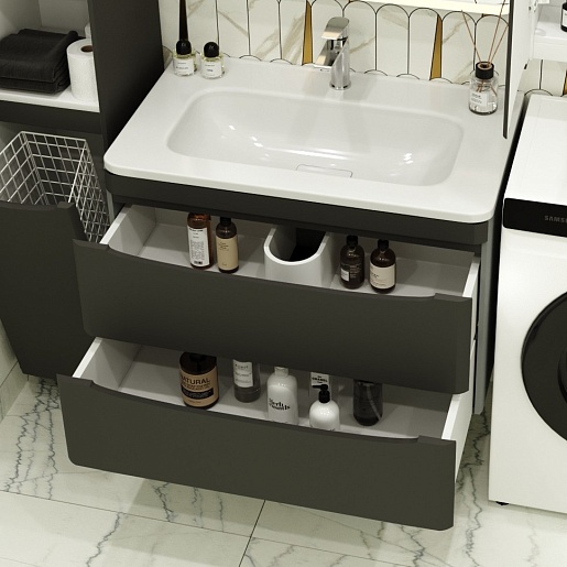 Тумба под раковину Бергамо Мини 80 подвесная черная Люкс антискрейтч Plus