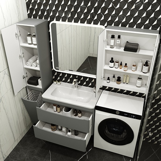 Тумба с раковиной Style Line Бергамо Мини 80 подвесная серая Люкс антискрейтч Plus - арт. СС-00002323 / СС-00002297.