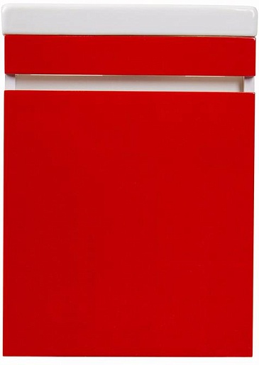 Описание: распашная дверь, петли справа, полочка, покрытие фасада ДСП, красная пленка; покрытие корпуса ДСП, глянцевая белая пленка. Фаянсовая раковина Como 40.