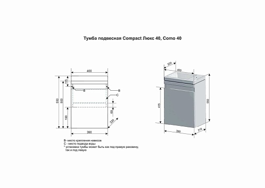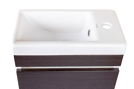 Описание: распашная дверь, петли справа, полочка, покрытие фасада ДСП, матовая пленка венге; покрытие корпуса ДСП, глянцевая белая пленка. Фаянсовая раковина Como 40.