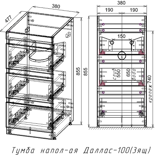 Напольная тумба под раковину Style Line Даллас 100 R 3 ящика - арт. АА00-000069 / СС-00000517.