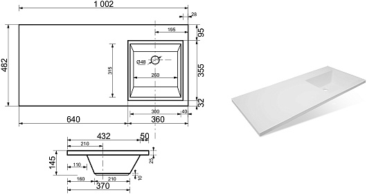 Style Line Тумба с раковиной Даллас 100 R Люкс Plus 3 ящика белая