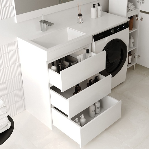 Тумба для умывальника Даллас 120 Люкс Plus 3 ящ., белая