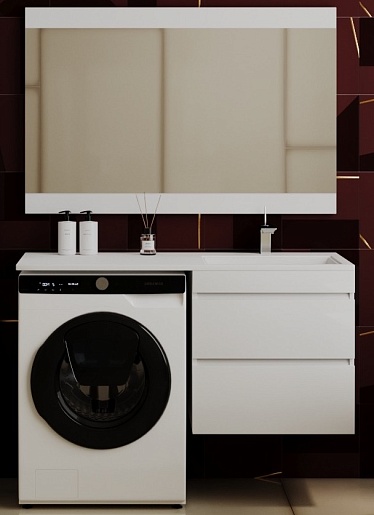 Тумба для умывальника Даллас 120 Люкс, белая PLUS подвесная