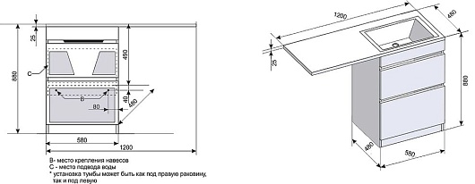 Тумба с раковиной Style Line Даллас 120 Люкс Plus R - арт. CC-00000424 / СС-00000394.