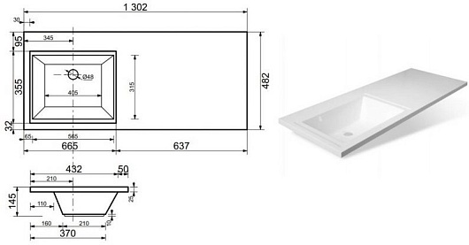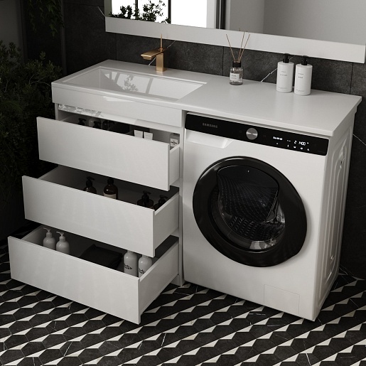 Style Line Тумба с раковиной Даллас 130 L 3 ящика под стиральную машину