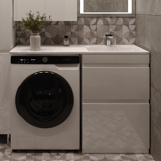 Style Line Тумба с раковиной Даймонд 120 R glass, Люкс белая, PLUS