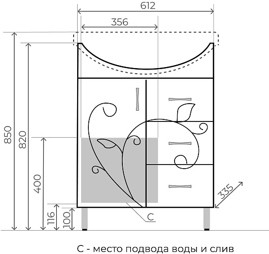 В комплекте: тумба, раковина, ножка (4 шт.).