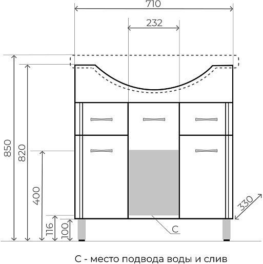 - 3 дверцы, 2 ящика.