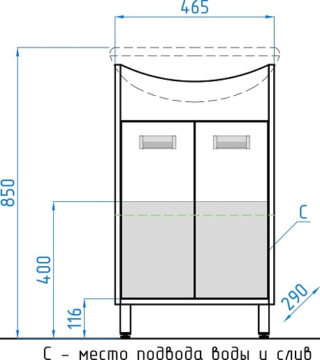 В комплекте: тумба, раковина, ножка (4 шт.).
