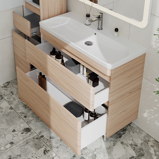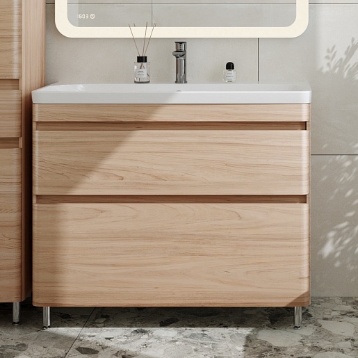 Тумба для умывальника напольная Атлантика 100, Люкс, ясень перламутр, PLUS