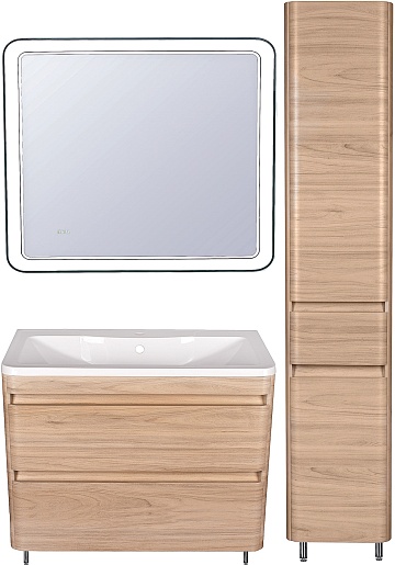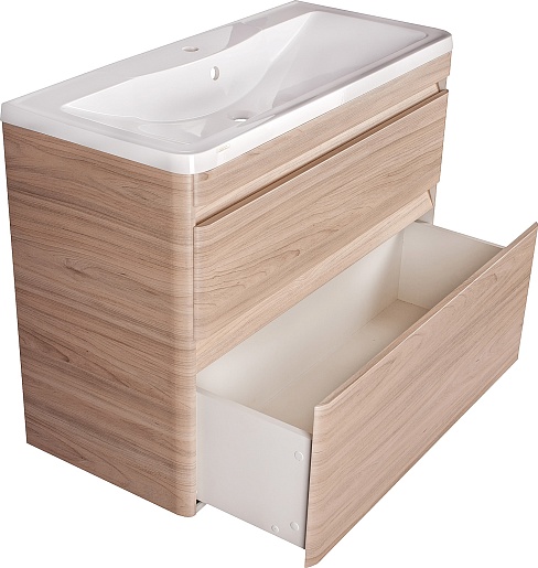 Style Line Тумба с раковиной напольная Атлантика 100, Люкс ясень перламутр, PLUS