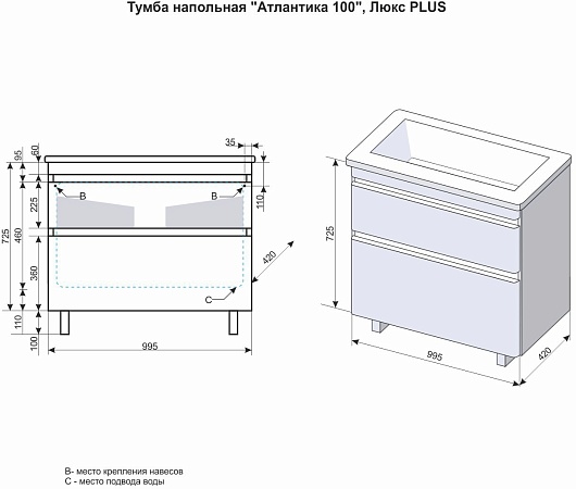 - мебельная раковина Атлантика 100