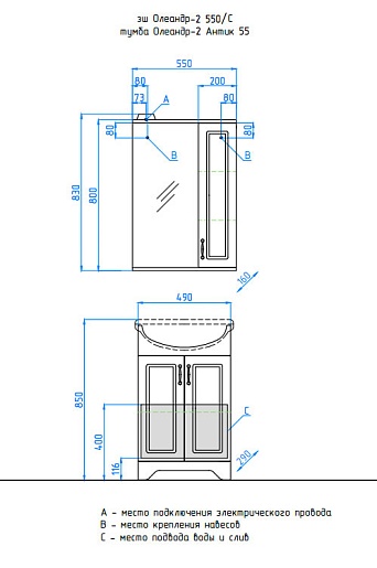 Тумба с раковиной "Олеандр-2 55" — арт. ЛС-00000046 / ЛС-00000158
