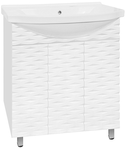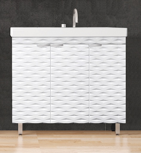- напольная тумба под раковину: 3 распашные дверцы, стильные хромированные ручки, ножки
