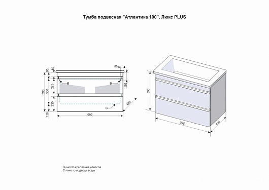 Тумба для умывальника подвесная Атлантика 100, Люкс, антискрейч, PLUS