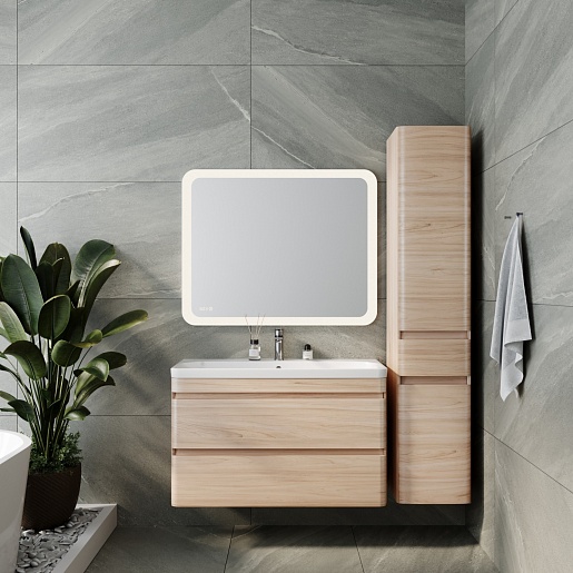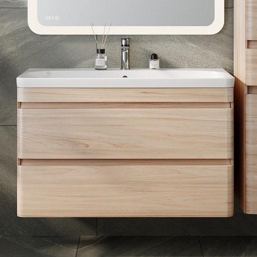 Style Line Тумба с раковиной подвесная Атлантика 100, Люкс ясень перламутр, PLUS