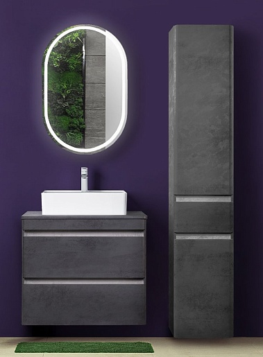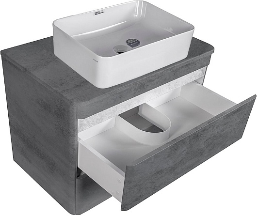 Тумба для умывальника подвесная Атлантика 60 бетон темный, со столешницей
