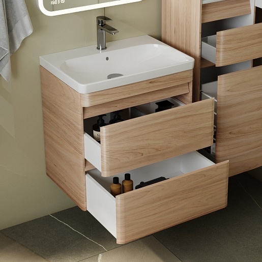 Тумба для умывальника подвесная Атлантика 60, Люкс ясень перламутр, PLUS