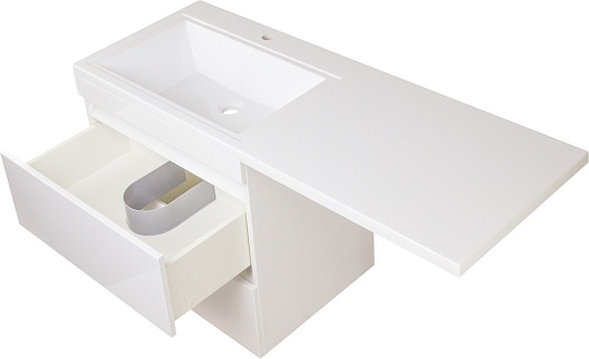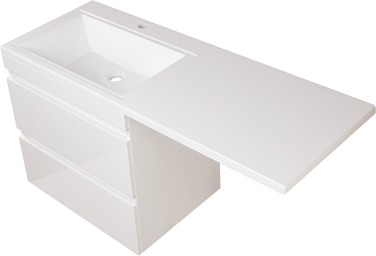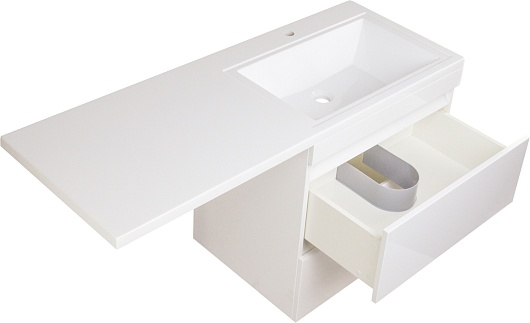 Style Line Тумба с раковиной подвесная Даллас 130 L Люкс, белая PLUS эмаль