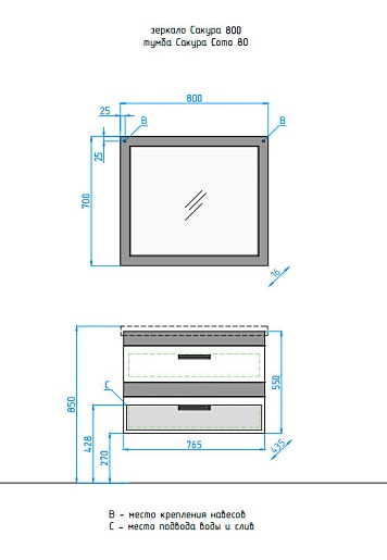 - напольная тумба под раковину: 2 выдвижных ящика, декоративные ручки