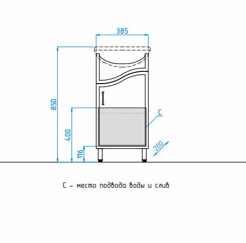 - напольная тумба под раковину: распашная дверца, металлическая ручка, ножки.