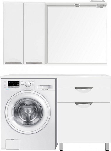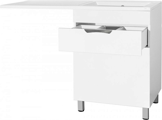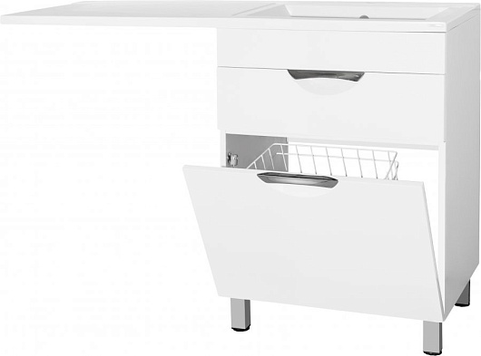 - напольная тумба под раковину: распашная дверца, корзина для белья, ящик, ножки