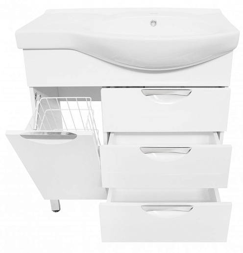 - ЛС-00000526 напольная тумба под раковину Жасмин 82: 3 выдвижных ящика, корзина для белья, врезные ручки, ножки